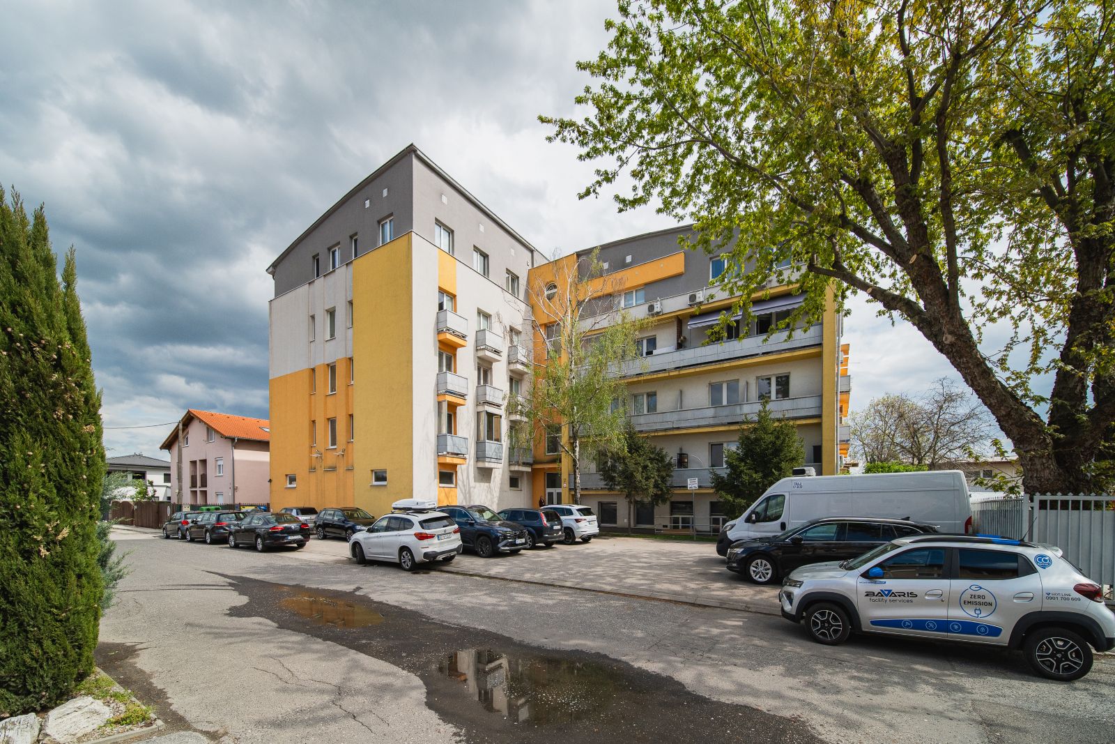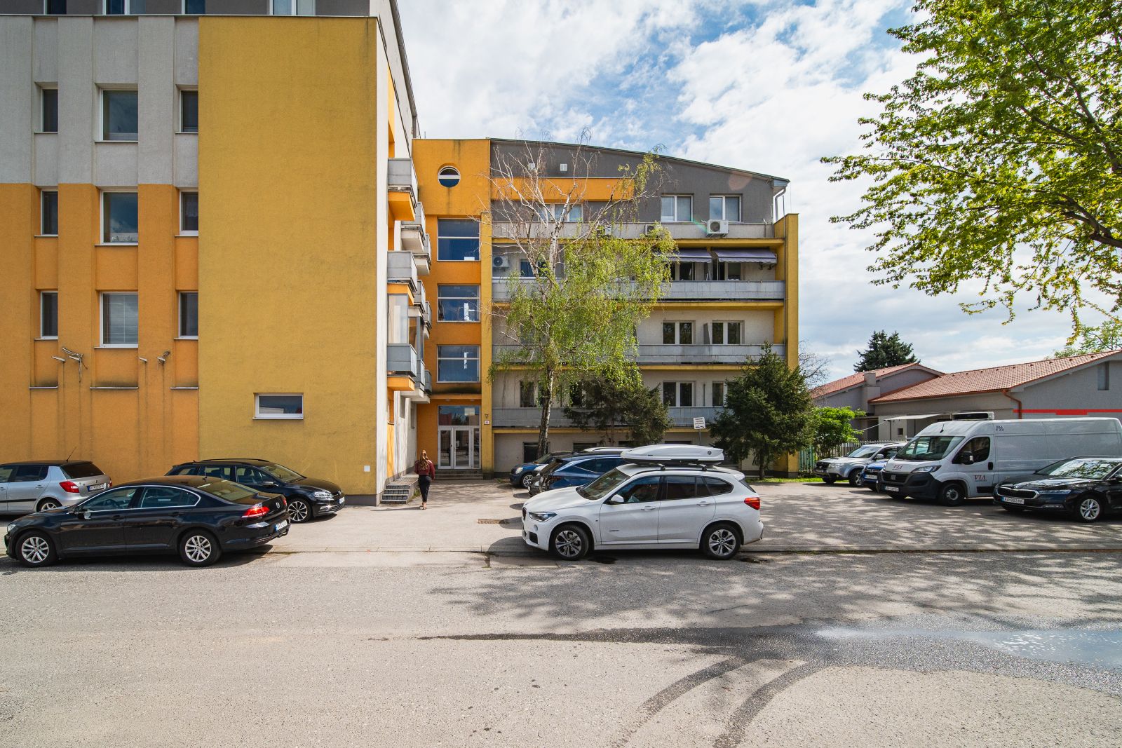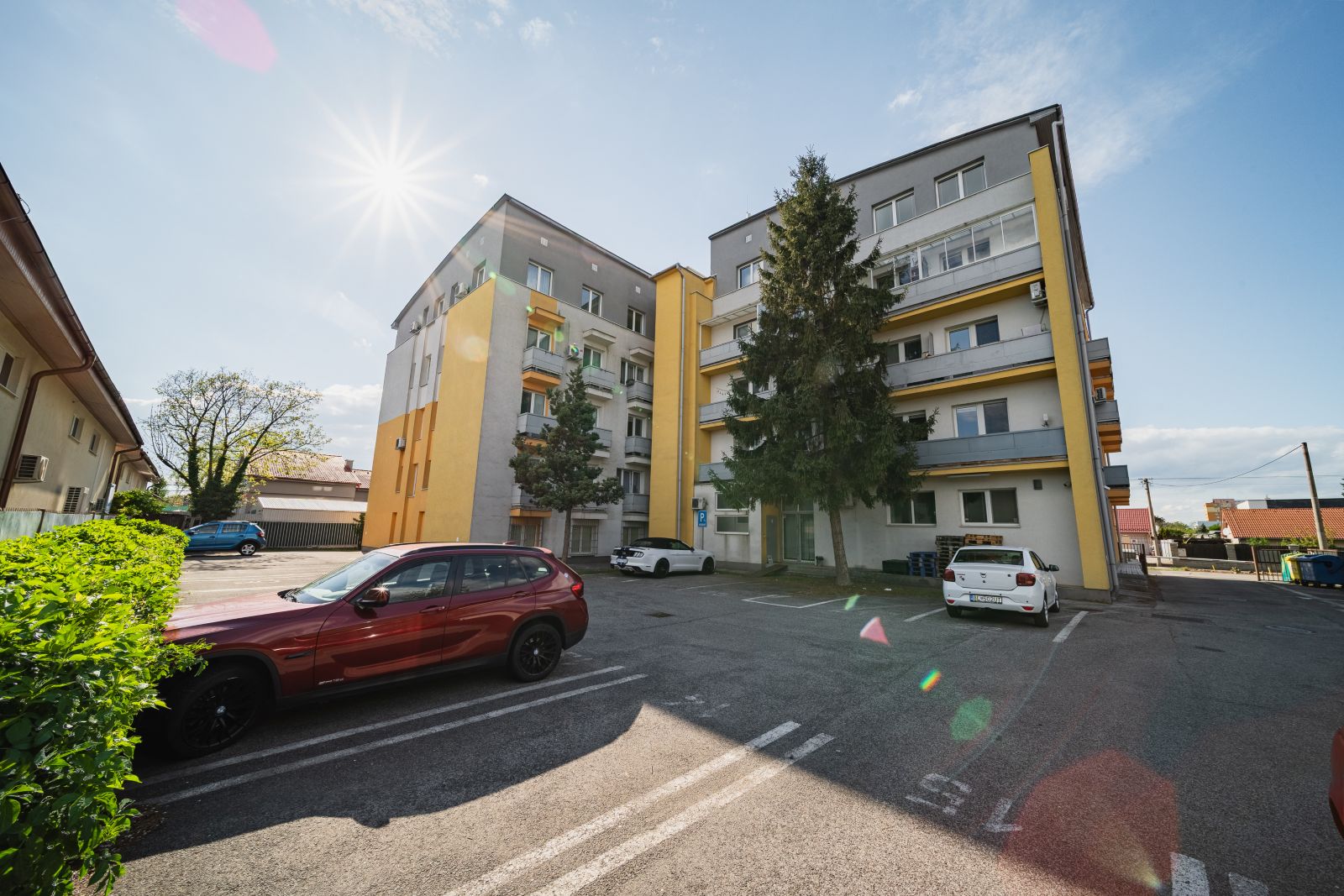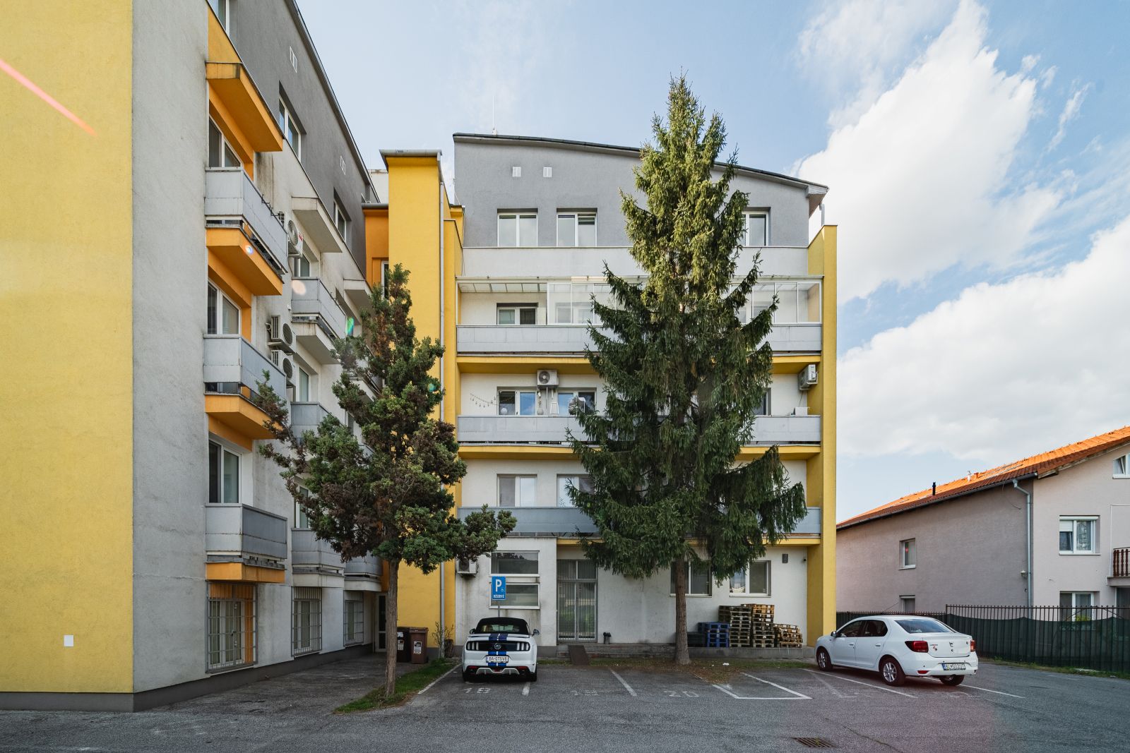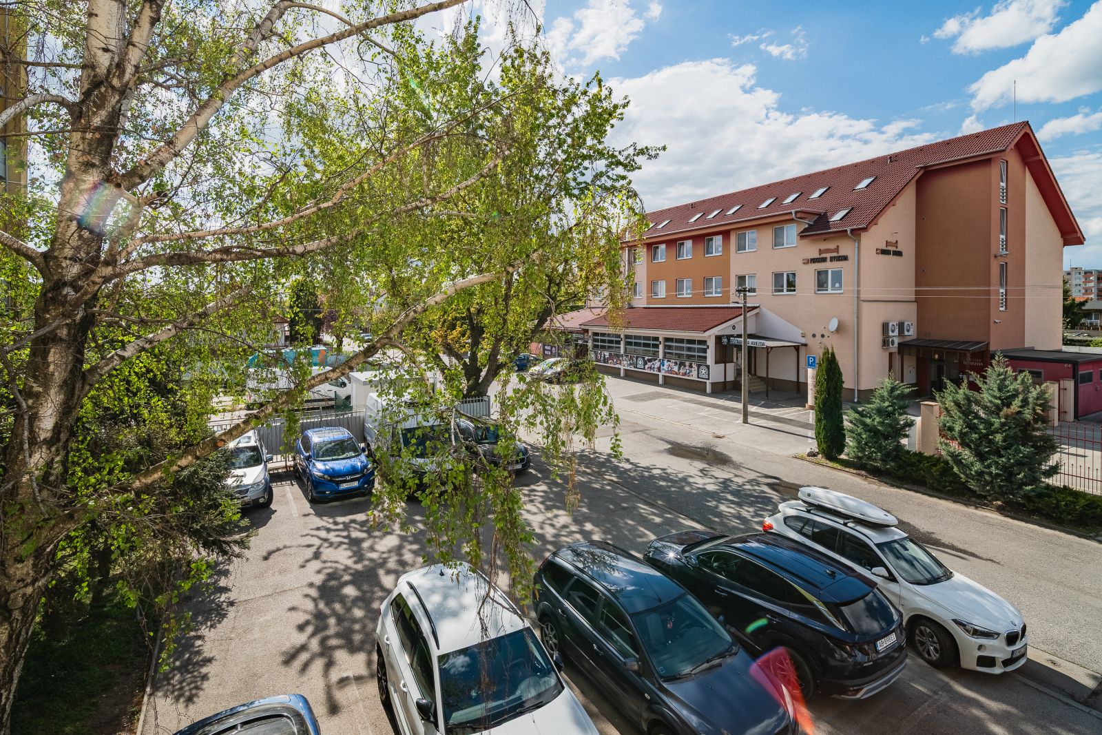 Veľkým benefitom je bezproblémové parkovanie priamo v areáli: